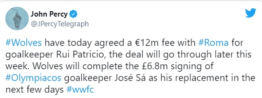 Ο ίδιος ο Σα τα έχει βρει με τον αγγλικό σύλλογο και, κατά πως φαίνεται, το deal θα οριστικοποιηθεί μέσα στη βδομάδα, όταν και θα μετακινηθεί ο Πατρίτσιο στη Ρόμα.