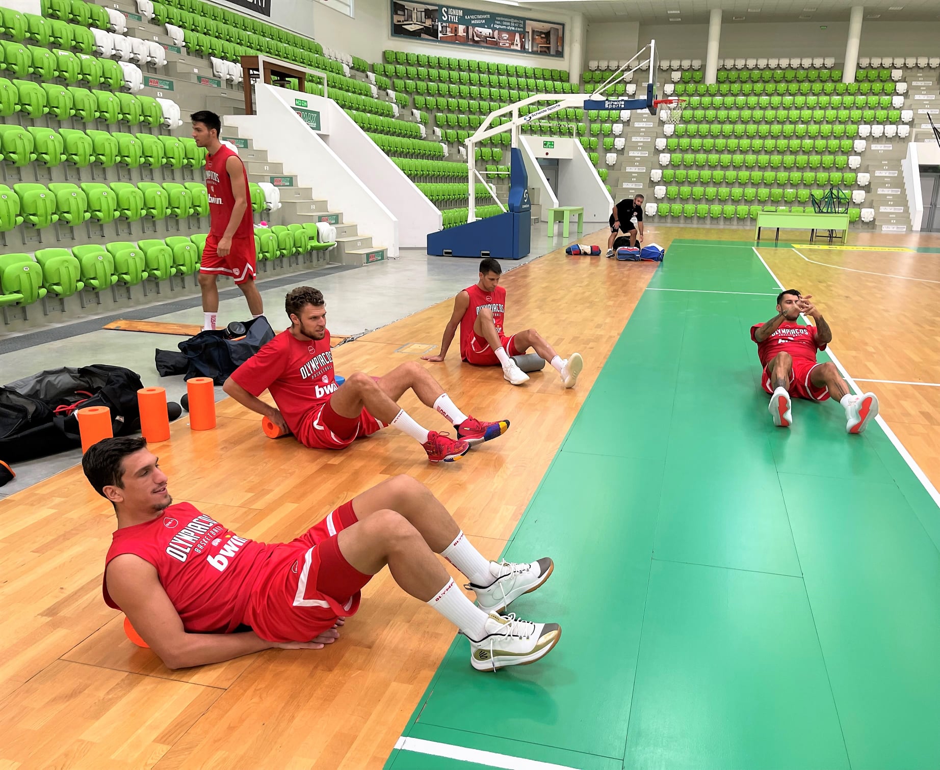 Ολοκληρώθηκε η πρώτη μέρας προετοιμασίας για την ομάδα μας. Στο Πράβετς θα μονταριστεί ο νέος μπασκετικός Ολυμπιακός και το thrilemou.gr σας παρουσιάζει φωτογραφικό υλικό: